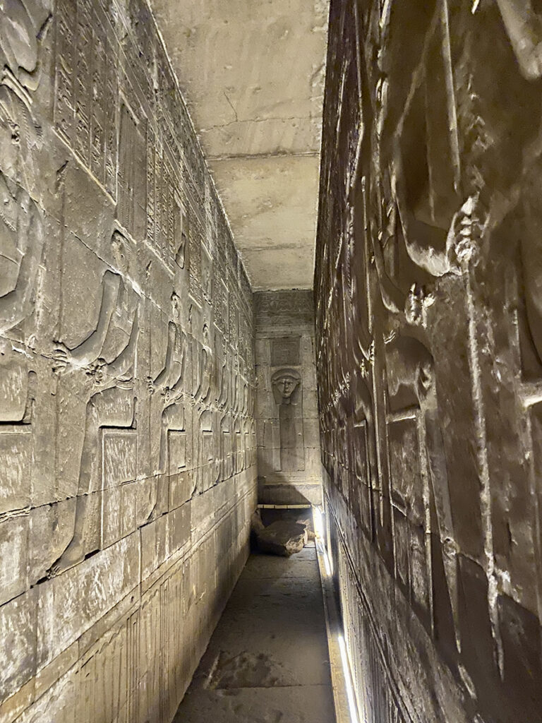 突き当たりにはハトホル神。こちらをまっすぐに見据えています。
