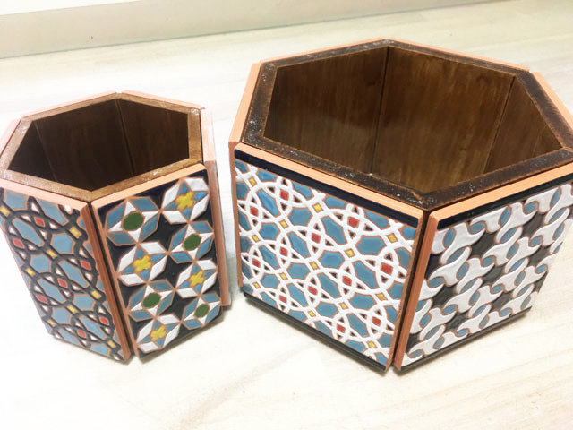 - かごトレーの中敷タイル/クエルダセカ技法