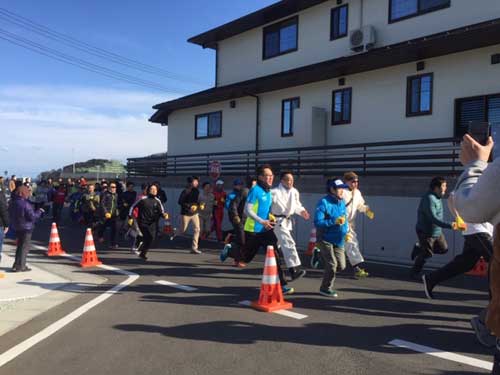 これは「津波が来たら高台へ逃げる」という津波避難の大切さを伝承するため、女川町に津波が到来した午後3時32分に「逃げろー!」の掛け声で一斉にスタートし、高台にある白山神社を目指します。一位でゴールした人がその年の「復幸男」となる、というものです。(兵庫県西宮神社「福男」のお墨付きですよ~)