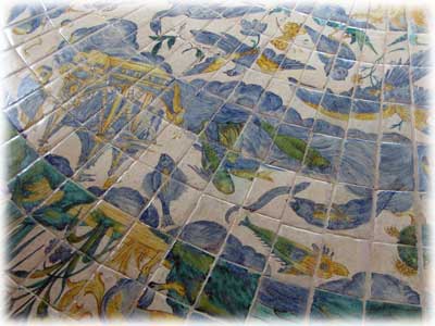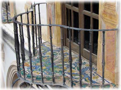 ![]() ![]() この青い屋根の下には小さなバルコニーがついていて、 そこにも絵タイルが描かれていました。 とても綺麗な模様のマヨルカタイル。バルコニーによって模様も違っています。 |