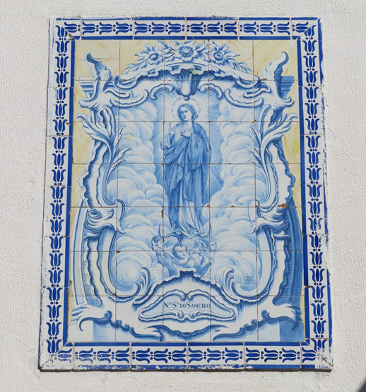 更に進むと奥に大きな石の彫刻があり、それを通りすぎるとありました、彫刻の裏にアズレージョが!