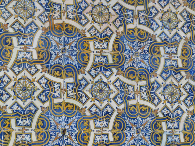 主な見どころとして、図書館、礼拝堂、帽子の間があります。図書館は絢爛豪華な場所で金箔塗りの本棚等があり、写真撮影は禁止でした。図書館にタイルはありませんでしたが見学コースのあちこちにアズレージョがありました。