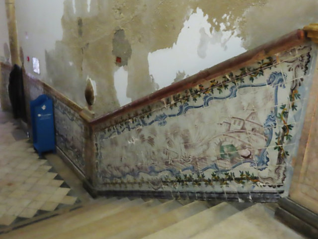 壁の上部には歴代のポルトガルの国王の肖像があり、その下にアズレージョがあります。